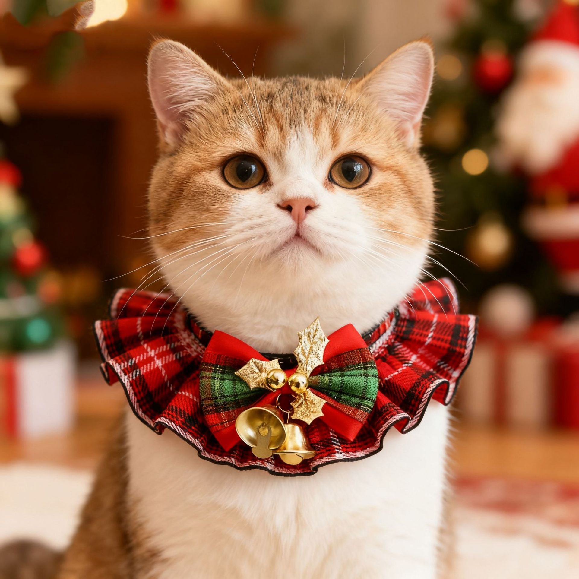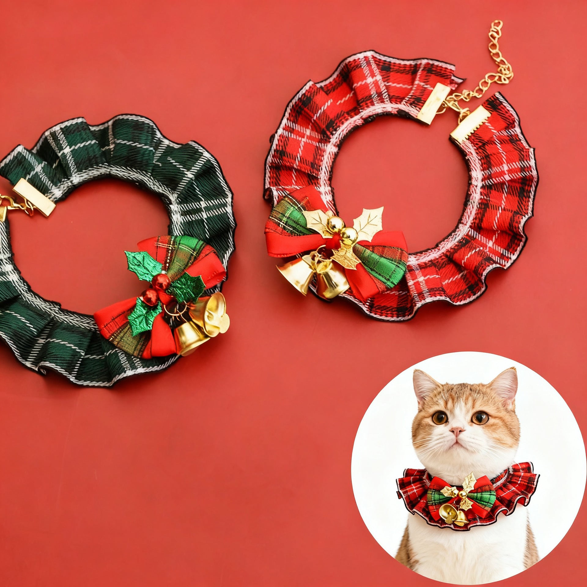 This collection features festive pet collars designed specifically for the Christmas season. They come in a classic checkered pattern, making them both cute and delicate. Each collar is adorned with a charming bow and incorporates elements such as holly leaves, red berries, and gold bells, adding a joyful and festive touch. The collars also come with a gold chain or clip for easy adjustment and wearing, making them the perfect choice to dress up your cat or dog for the holidays.